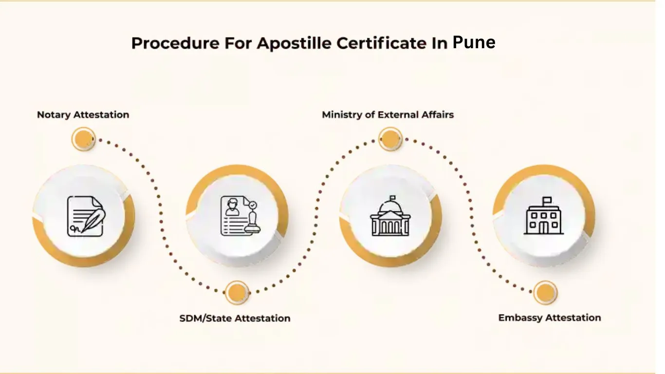 To get an apostille service on a document in Pune first, you need to complete the notary attestation and then the Sub Divisional Magistrate/State Attestation procedure.